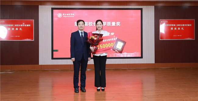 陳向煒與校長教學(xué)質(zhì)量獎獲得者李靜頒獎合影