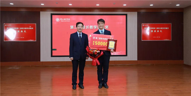 陳向煒與校長教學(xué)質(zhì)量獎獲得者鄒琨頒獎合影