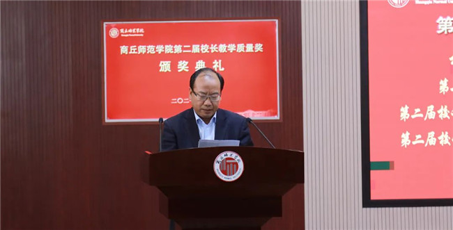 郭文佳宣讀《商丘師范學(xué)院關(guān)于表彰第二屆校長教學(xué)質(zhì)量獎獲獎?wù)叩臎Q定》。