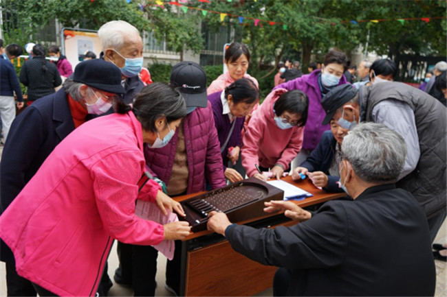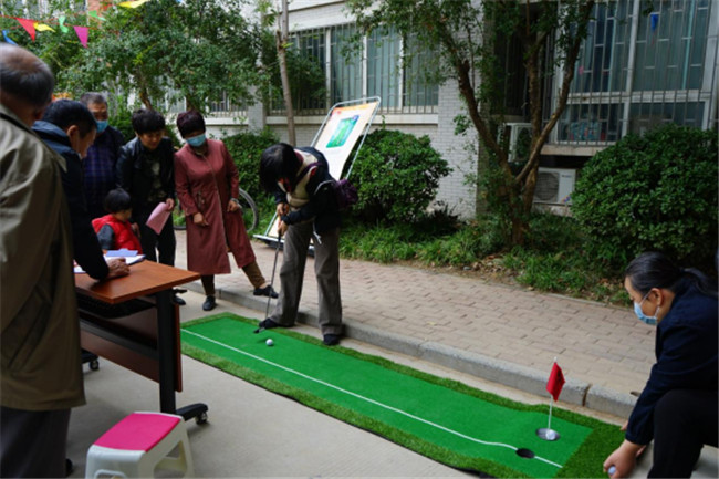 活動項目眼疾手快、驅趕病毒、挑戰(zhàn)不可能、幻影彈彈球、瀟灑高爾夫、民間傳統(tǒng)投壺、幸運摸彩球、歡樂搖骰子在活動場地周圍依次排開,每位老同志結合自身情況參加活動。大家時而奮力投籃,時而小心揮桿,不論成績如何,臉上都洋溢著開心的笑容。
