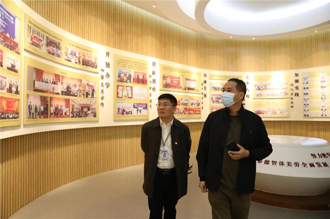 座談會后,周勇軍重點參觀了學(xué)校校史館和創(chuàng)新創(chuàng)業(yè)教育學(xué)院,雙方就學(xué)校的內(nèi)涵發(fā)展、特色發(fā)展和優(yōu)質(zhì)發(fā)展進行深入交流。