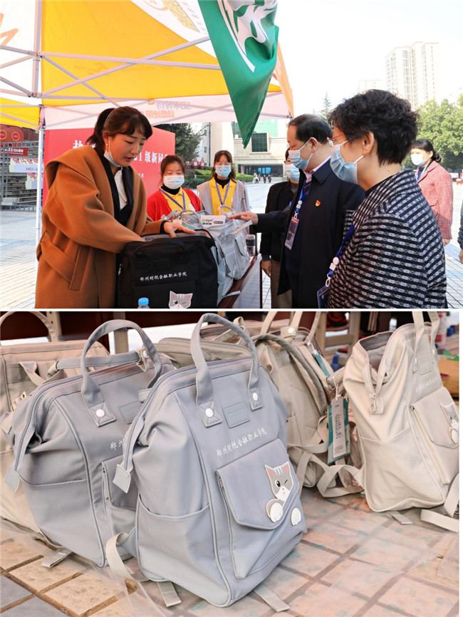 院領(lǐng)導(dǎo)在入學(xué)綠色通道查看“入學(xué)愛心大禮包”