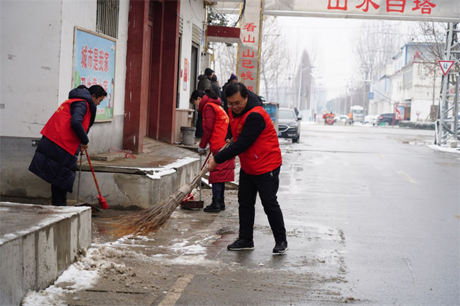 大寒節(jié)氣,南陽大雪紛飛,為方便社區(qū)群眾出行,保障居民出行安全,1月21日,河南工業(yè)職業(yè)技術(shù)學(xué)院組織黨員志愿者走進(jìn)白塔社區(qū)開展掃雪除冰活動(dòng)。志愿者們踏著積雪,拿起鐵鍬、掃帚等工具走進(jìn)白塔,認(rèn)真清掃道路上和公共區(qū)域的積雪,干的熱火朝天。經(jīng)過大家的努力,一條條整潔的道路映入眼簾,為居民的出行帶來了方便,贏得了路人的連連稱贊。