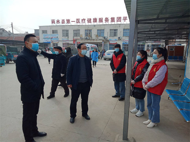 段文海到衛(wèi)生院看望大學(xué)生志愿者(趙永昌攝)