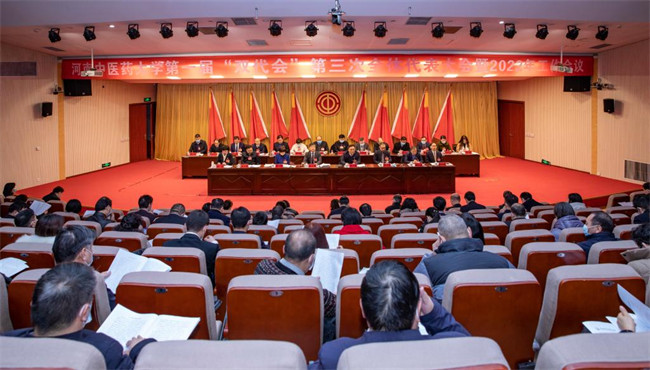 會(huì)上,校長許二平作了題為《守正創(chuàng)新?lián)?dāng)作為 奮力開創(chuàng)學(xué)校高質(zhì)量發(fā)展新局面》的工作報(bào)告。許二平表示,2021年是中國共產(chǎn)黨成立100周年,學(xué)校按照省委、省政府各項(xiàng)決策部署,團(tuán)結(jié)帶領(lǐng)全校師生把黨史學(xué)習(xí)教育與攻堅(jiān)克難、干事創(chuàng)業(yè)結(jié)合起來,有力推動(dòng)了各項(xiàng)事業(yè)高質(zhì)量發(fā)展。一是全面深化黨建引領(lǐng),匯聚發(fā)展合力。學(xué)校黨委堅(jiān)持以首位意識推進(jìn)政治建設(shè),深入開展學(xué)習(xí)教育,筑牢守好意識形態(tài)陣地,不斷夯實(shí)基層黨組織和干部隊(duì)伍建設(shè),多措并舉做好統(tǒng)一戰(zhàn)線工作,扎實(shí)推進(jìn)黨風(fēng)廉政建設(shè)和作風(fēng)建設(shè),全面落實(shí)新時(shí)代黨的建設(shè)總要求,不斷提升黨建工作質(zhì)量,為推動(dòng)學(xué)校各項(xiàng)事業(yè)高質(zhì)量發(fā)展提供堅(jiān)強(qiáng)引領(lǐng)和保障。二是堅(jiān)決提高政治站位,礪煉發(fā)展能力。學(xué)校黨委堅(jiān)持發(fā)揮領(lǐng)導(dǎo)班子核心作用,講政治、顧大局,把對黨的絕對忠誠落實(shí)到敢于擔(dān)難擔(dān)險(xiǎn)和服務(wù)發(fā)展大局中:以書院制改革為抓手推動(dòng)落實(shí)根本任務(wù)、科學(xué)制定“十四五”發(fā)展規(guī)劃和2035年遠(yuǎn)景目標(biāo)、站位“高”,行動(dòng)“快”,責(zé)任“實(shí)”,工作“細(xì)”,持續(xù)抓牢疫情防控、凝聚力量抗汛救災(zāi),經(jīng)受住了突發(fā)事件對學(xué)校治理體系治理能力的檢驗(yàn),有效銜接鞏固脫貧攻堅(jiān)成果與助力鄉(xiāng)村振興,取得了顯著成績。三是準(zhǔn)確把握形勢任務(wù),爭取發(fā)展主動(dòng)。學(xué)校聚焦貫徹落實(shí)黨中央和省委的新部署新要求,準(zhǔn)確把握新形勢新任務(wù),積極謀劃、主動(dòng)融入新發(fā)展格局。通過學(xué)習(xí)、宣傳、調(diào)研等舉措在全校迅速掀起學(xué)習(xí)貫徹?zé)岢,探索傳承?chuàng)新發(fā)展路徑;通過積極布局人才培養(yǎng)、學(xué)科、科研評價(jià)等體系的重構(gòu),打造中醫(yī)藥服務(wù)和文化傳承新高地,助推中醫(yī)藥強(qiáng)省建設(shè)。積極融入創(chuàng)新驅(qū)動(dòng)戰(zhàn)略,服務(wù)現(xiàn)代化河南建設(shè),進(jìn)一步把思想、行動(dòng)統(tǒng)一到省委的部署要求上來,緊跟省委部署、明確目標(biāo)定位、積極爭創(chuàng)“雙一流”,在不斷強(qiáng)化創(chuàng)新引領(lǐng)、扛牢立德樹人根本任務(wù)、推動(dòng)中醫(yī)藥傳承創(chuàng)新發(fā)展、提升全方位全周期健康服務(wù)水平、全面啟動(dòng)“雙一流”創(chuàng)建工作等方面集中發(fā)力,成效顯著。四是扎實(shí)推進(jìn)內(nèi)涵建設(shè),保持發(fā)展勢頭。2021年,學(xué)校堅(jiān)定走好內(nèi)涵式發(fā)展道路,有力推動(dòng)了學(xué)校轉(zhuǎn)型發(fā)展進(jìn)入新階段:人才培養(yǎng)質(zhì)量有新提升、學(xué)科發(fā)展水平持續(xù)提高、科學(xué)研究取得新突破、師資隊(duì)伍建設(shè)不斷加強(qiáng)、社會(huì)服務(wù)體系更加完善、國際合作交流合作深入拓展、治理能力和基礎(chǔ)能力穩(wěn)步提升。