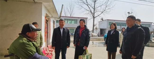 高延玲、張翠翠和張慎璞一行來到蘭青鄉(xiāng)劉胡村慰問困難群眾,為困難群眾捐贈了棉被等物資。