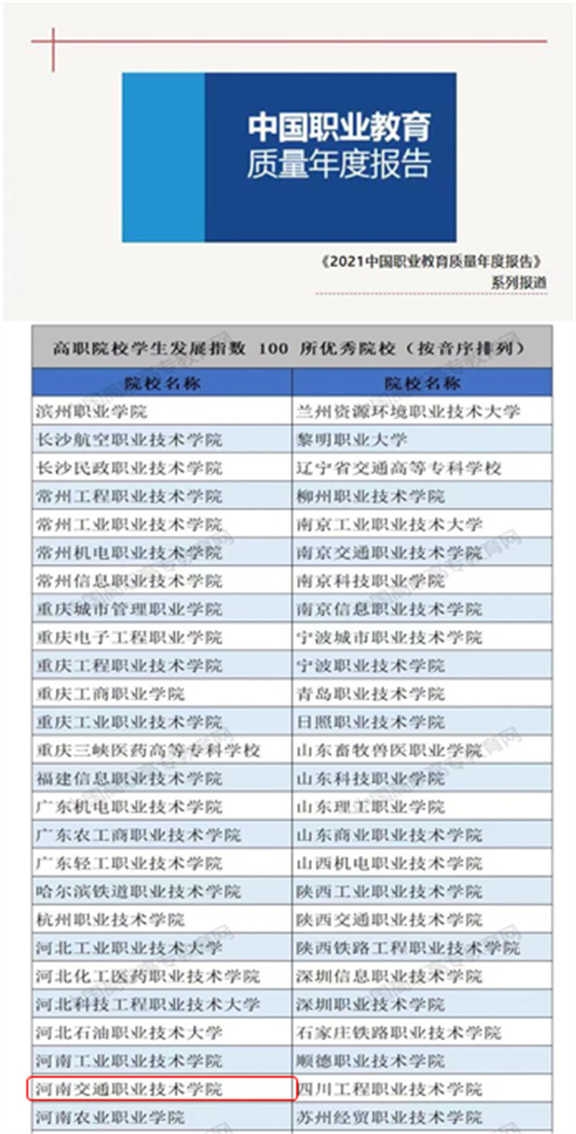 河南交通職業(yè)技術學院入選全國100所高職院校學生發(fā)展指數(shù)優(yōu)秀院校