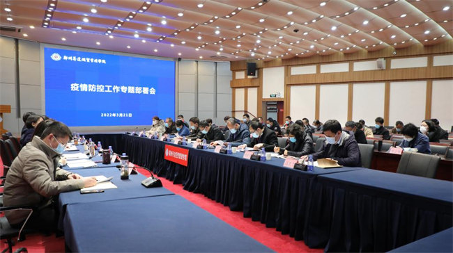 會上,疫情防控指揮部副指揮長、校黨委副書記、副校長、工會主席張金安就認真貫徹落實黨中央、國務院、省市各級疫情防控會議精神,從八個方面對學校疫情防控工作進行了具體安排部署:一是要召開兩個專題會議。二是要嚴把學校大門關。要按照“五個一律”的要求做好門衛(wèi)管理,非本校人員一律不準入校。嚴格執(zhí)行入校身份核驗、刷兩碼、測體溫、信息登記、查驗48小時內(nèi)核酸檢驗證明等措施。嚴格落實快遞、物流等消毒消殺,引導廣大師生暫停網(wǎng)絡購物、訂購外賣等行為。三是要加強學生管理。原則上學生不允許請假外出,如因身體原因或特殊情況需要出校,要嚴格履行審批手續(xù),嚴禁翻越圍墻出入。四是要加強教職工管理。教職工原則上不允許離開校園和鄭州,不乘坐公共交通,實行“兩點一線”閉環(huán)管理,跨市流動需請假報批。本人及共同居住人員有離鄭旅居史的,要主動進行報備,做到三天兩檢。省外返鄭人員居家健康觀察一周,一周內(nèi)不聚集、不聚餐,并進行一周三檢。五是要暫停校內(nèi)聚集性活動,暫停外出培訓交流,杜絕聚餐、聚會等活動。六是要做好日報告、零報告制度。各單位要做好晨、午、晚檢和重點人群的行程軌跡及健康狀況排查,加強對請假、校外居住等重點人員管理,強化重點場所、重點部位的消毒消殺。七是要加強人文關懷。做好心理健康教育,引導廣大師生員工做自己健康管理的第一責任人。八是要完善組織架構。加強隊伍力量,加大檢查力度,對不遵守學校防疫規(guī)定,不配合落實相關管理措施等行為加大督導檢查力度,對相關違規(guī)人員進行處理。