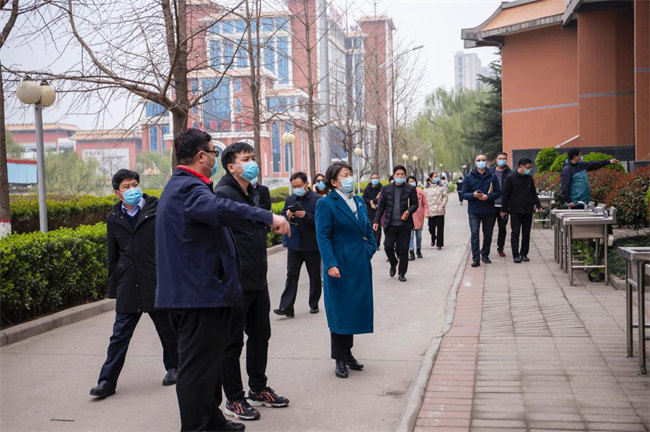 檢查過程中,徐軍保一行聽取了學校疫情防控工作匯報,就門崗管理、教學安排、師生管理、餐廳管理、防疫物資儲備、應急處置等方面工作進行了深入交流,并提出了富有指導性的意見。