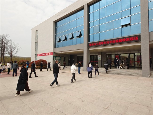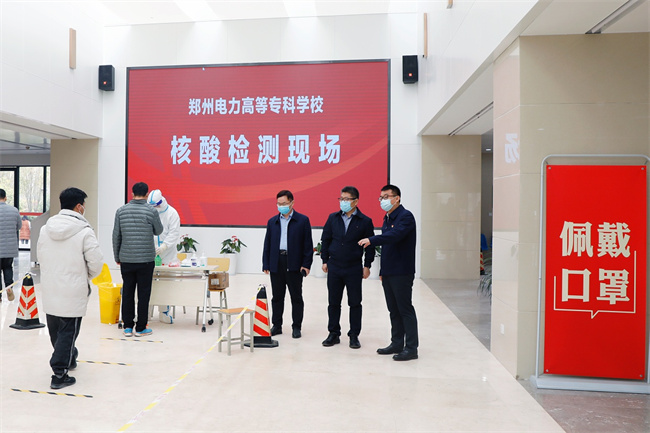 鄭州電專領(lǐng)導(dǎo)實地查看采樣流程、秩序維護、防控措施落實等情況,詳細了解采樣點區(qū)域劃分、現(xiàn)場組織、采樣進度、物資配備等情況,對參與核酸檢測醫(yī)務(wù)人員等工作人員的辛苦付出表示誠摯感謝和敬意。