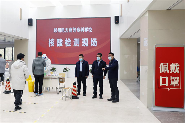 鄭州電力高專(zhuān)領(lǐng)導(dǎo)實(shí)地查看采樣流程、秩序維護(hù)、防控措施落實(shí)等情況,詳細(xì)了解采樣點(diǎn)區(qū)域劃分、現(xiàn)場(chǎng)組織、采樣進(jìn)度、物資配備等情況,對(duì)參與核酸檢測(cè)醫(yī)務(wù)人員等工作人員的辛苦付出表示誠(chéng)摯感謝和敬意。