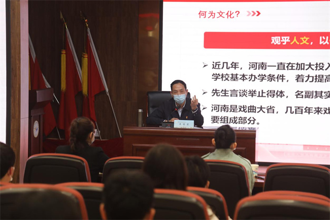 文化興則國運興,文化強則民族強。文化強國是中華民族復興的重要標準,建設社會主義文化強國,不僅需要提升公共文化服務水平,健全現(xiàn)代化文化產業(yè)體系,還需要提高國家文化軟實力。來棟梁結合河南節(jié)日奇妙游系列宣傳片和短視頻博主李子柒等當下熱點話題,教育引導同學們要通過自己的實際行動繼承和弘揚中華優(yōu)秀傳統(tǒng)文化,講好中國故事,傳播好中國聲音,闡釋好中國特色,做有情懷、有思想、有擔當、有學識的新時代大學生。