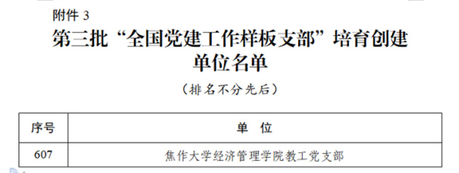 經(jīng)濟(jì)管理學(xué)院教工黨支部在學(xué)校黨委的正確領(lǐng)導(dǎo)下,高度重視黨建工作,將黨建工作與思政教育、專業(yè)建設(shè)、學(xué)生工作雙融雙促,充分調(diào)動教師黨員的積極性、主動性和創(chuàng)造性,發(fā)揮基層黨組織在立德樹人、價值引領(lǐng)、教學(xué)科研、人才培養(yǎng)、服務(wù)地方的優(yōu)勢,以內(nèi)涵式發(fā)展推動“雙高”建設(shè),把黨建優(yōu)勢轉(zhuǎn)化為學(xué)院發(fā)展優(yōu)勢,先后獲得焦作市“標(biāo)準(zhǔn)化規(guī)范化建設(shè)示范黨支部”、焦作市“先進(jìn)基層黨組織”、河南省首批全省高校“省級樣板黨支部”。