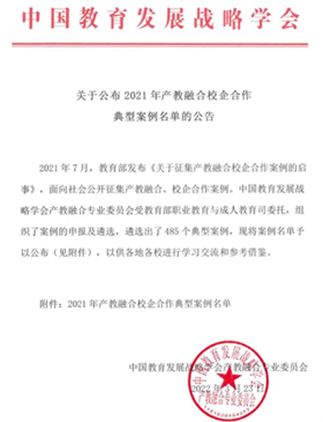 產(chǎn)教融合校企合作典型案例的成功入選是學(xué)校多年來持續(xù)深化產(chǎn)教融合、校企合作的優(yōu)秀成果檢驗(yàn),學(xué)校將進(jìn)一步充分挖掘產(chǎn)教融合典型案例的亮點(diǎn)特色,真正將校企合作工作做深、做實(shí),切實(shí)促進(jìn)學(xué)校教育教學(xué)改革,共同提升人才培養(yǎng)質(zhì)量。
