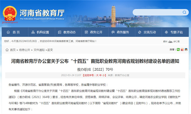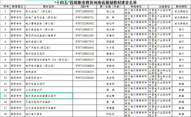 中新河南網(wǎng)3月31日電 日前,省教育廳印發(fā)《關(guān)于公布“十四五”首批職業(yè)教育河南省規(guī)劃教材建設(shè)名單的通知》(教辦職成〔2022〕70號),鄭州電力高等?茖W(xué)校18本教材成功獲批“十四五”首批職業(yè)教育省規(guī)劃教材建設(shè)項(xiàng)目。