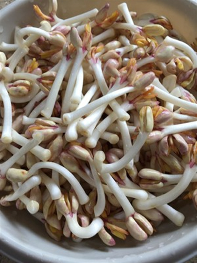 花生芽生長(zhǎng)期間始終保持黑暗環(huán)境,一般在室溫條件下,7-8天左右可收芽苗了。