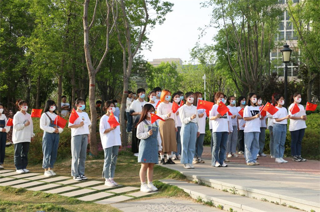 演出以舞蹈快閃的形式進(jìn)行。古典舞《河職青綠》、《紅豆》,神韻結(jié)合,形神兼?zhèn)?街舞《日不落》、《舞動(dòng)青春》,節(jié)奏強(qiáng)勁,動(dòng)作炫酷;當(dāng)代舞《英雄贊歌》、《茉莉芬芳》,緬懷先烈,青春擔(dān)當(dāng)。精彩的表演和高超的舞技贏得了在場觀眾的陣陣掌聲。演出最后,校領(lǐng)導(dǎo)與全體演職人員和現(xiàn)場師生共同唱響《我和我的祖國》,將本次演出推向高潮,整個(gè)廣場國旗舞動(dòng),歌聲激昂。