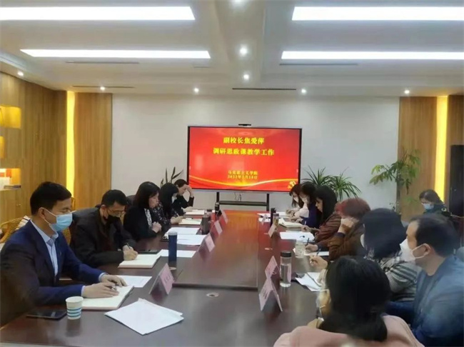 3月15日下午,副校長焦愛萍一行深入馬克思主義學(xué)院就思政課教學(xué)工作做專題調(diào)研指導(dǎo)。教務(wù)處、教育教學(xué)督導(dǎo)室等部門負(fù)責(zé)人,該校思政課全體專兼職教師參加了會(huì)議。會(huì)上,焦愛萍對(duì)學(xué)校思政課教學(xué)技能“大練兵、大比武、大展示、大提升”活動(dòng)做了動(dòng)員講話,并就進(jìn)一步推動(dòng)學(xué)校思政課教學(xué)改革,持續(xù)提高思政課教學(xué)質(zhì)量提出了具體要求。