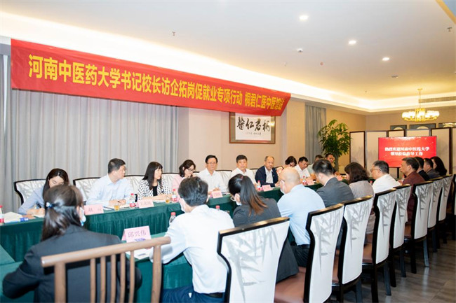 許二平在認真聽取企業(yè)介紹后,介紹了學(xué)校的基本情況、學(xué)科建設(shè)、人才培養(yǎng)以及學(xué)校的畢業(yè)生就業(yè)工作。他強調(diào),此次走訪調(diào)研,是落實教育部辦公廳、河南省教育廳開展高校書記校長訪企拓崗促就業(yè)專項行動相關(guān)文件要求的具體舉措。就進一步促進學(xué)校畢業(yè)生充分高質(zhì)量就業(yè),許二平表示,校企雙方要共同探討中醫(yī)藥事業(yè)的發(fā)展、中醫(yī)藥人才的培養(yǎng),為畢業(yè)生搭建就業(yè)橋梁,創(chuàng)建更好的合作平臺;要共同推進就業(yè)基地建設(shè),加強校企融合,校方要為企業(yè)推薦優(yōu)秀畢業(yè)生,同時也誠摯歡迎企業(yè)為學(xué)校人才培養(yǎng)等方面提供寶貴意見和建議。許二平指出,通過本次走訪校友企業(yè),深切感受到了校友對中醫(yī)藥事業(yè)發(fā)展的責(zé)任感、以及濃濃的中醫(yī)藥情結(jié),頗有感觸,希望下一步能攜手未來,共同促進中醫(yī)藥事業(yè)蓬勃發(fā)展。學(xué)校將以此次走訪為契機,進一步提高學(xué)生的理論水平及實踐操作技能,提高職業(yè)能力、就業(yè)本領(lǐng),為中醫(yī)藥事業(yè)發(fā)展做出更大貢獻。