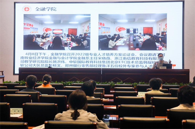 隨后,各院(系)主要教學(xué)負(fù)責(zé)人對(duì)本部門(mén)各專(zhuān)業(yè)人才培養(yǎng)方案的課程設(shè)置情況進(jìn)行匯報(bào)發(fā)言。金融學(xué)院院長(zhǎng)王玉剛對(duì)金融學(xué)院2022年擬招生的四個(gè)專(zhuān)業(yè)進(jìn)行了簡(jiǎn)要介紹。金融學(xué)院此次人才培養(yǎng)方案制定中以遵“規(guī)”、圍“群”、創(chuàng)“特”為特色亮點(diǎn),用不同顏色標(biāo)注課程,使用表格形式集中展現(xiàn)2022級(jí)金融學(xué)院各專(zhuān)業(yè)“崗—課—賽—證”融通的情況,一目了然,特色鮮明。