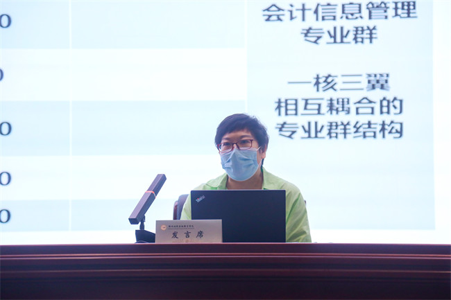 會(huì)計(jì)學(xué)院副院長(zhǎng)呂永霞詳細(xì)介紹了會(huì)計(jì)學(xué)院6個(gè)擬招生專(zhuān)業(yè)課程體系的設(shè)計(jì)思路。會(huì)計(jì)學(xué)院以省級(jí)高水平專(zhuān)業(yè)群建設(shè)為契機(jī),集中力量打造一核三翼、相互耦合的專(zhuān)業(yè)群結(jié)構(gòu),堅(jiān)持立德樹(shù)人、思政引領(lǐng),規(guī)范課程、課證融通,建立起高度共享的專(zhuān)業(yè)課程體系。