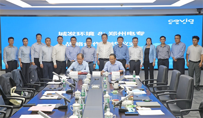 會后,在楊義波書記和朱紅兵董事長的見證下,副校長黃鵬代表鄭州電力高等?茖W(xué)校與城發(fā)環(huán)保能源有限公司總經(jīng)理、鄭州電力高等?茖W(xué)校優(yōu)秀畢業(yè)生柴繼業(yè)簽訂了2022屆畢業(yè)生校企聯(lián)合培養(yǎng)協(xié)議;副校長胡斌代表鄭州電力高等?茖W(xué)校與城發(fā)環(huán)境股份有限公司副總經(jīng)理易立強簽訂了深化校企戰(zhàn)略合作協(xié)議。
