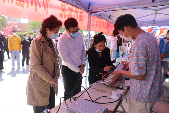 校領(lǐng)導(dǎo)在專業(yè)技能展示區(qū)與學(xué)子合影