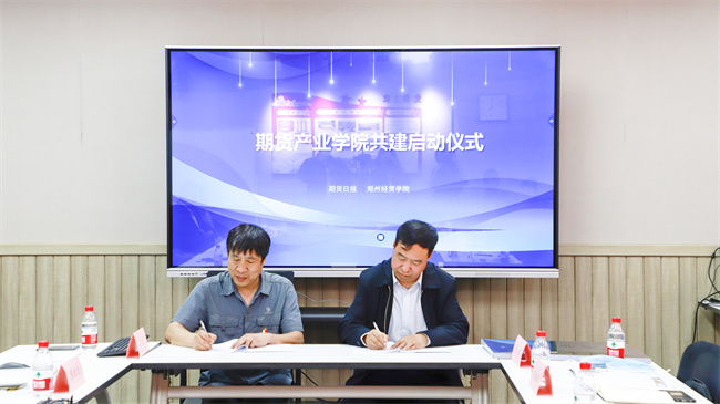 會議現(xiàn)場,校企雙方簽訂了“校企共建期貨產(chǎn)業(yè)學院協(xié)議書”,并且雙方舉行了“河南省金融衍生品大學生實習實踐教育基地”“期貨產(chǎn)業(yè)學院”授牌儀式,并就人才培養(yǎng)與行業(yè)需求、校企合作形式、途徑、內(nèi)容等進行了深入的溝通與交流,還就下一步合作計劃交換了意見。