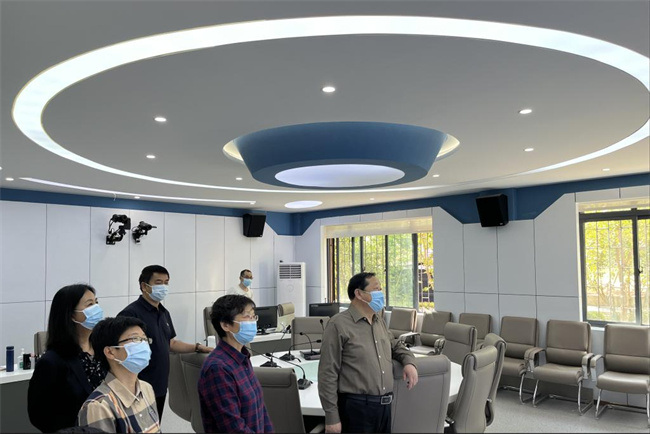 5月4日上午,學院黨委書記王霄鸝,學院黨委副書記、學院院長程慎,副院長施長春帶領疫情防控應急專班成員在勵行樓教學巡查中心對首日線上授課的相關情況進行了檢查,教務處在釘釘平臺上對班級群及任課教師的首日線上教學進行了整體巡查。