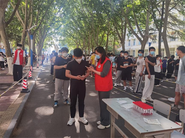 開展校園志愿服務,校黨委發(fā)出《致全校各級黨組織和全體黨員的倡議書》,要求發(fā)揮關鍵時刻黨支部戰(zhàn)斗堡壘作用和黨員先鋒模范作用,成立家屬區(qū)臨時黨支部,組成80余人的志愿者隊伍,黨員干部、教職工開始戰(zhàn)斗在校園核酸檢測、入門口值守等各個關鍵防控環(huán)節(jié),讓黨旗在疫情防控第一線高高飄揚!
