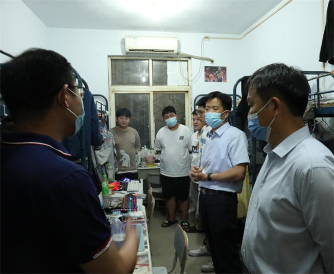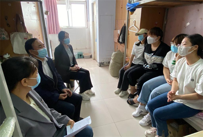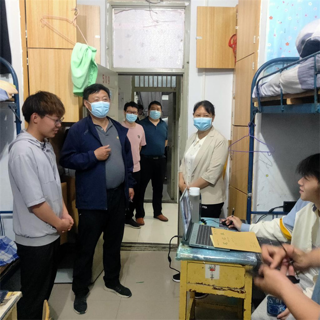 在走訪中,校領(lǐng)導(dǎo)與同學(xué)們親切交流、座談,了解線上學(xué)習(xí)和宿舍生活情況,聆聽他們?cè)谔厥鈺r(shí)期的建議和訴求,向同學(xué)們介紹了目前疫情防控形勢(shì)及學(xué)校疫情防控情況和具體舉措。叮囑大家要嚴(yán)格遵守學(xué)校疫情防控要求和校規(guī)校紀(jì),提高疫情防控責(zé)任意識(shí),積極主動(dòng)做好健康日?qǐng)?bào)告、核酸檢測(cè)等常態(tài)化防疫措施,做好個(gè)人防護(hù),養(yǎng)成良好的生活習(xí)慣。鼓勵(lì)同學(xué)們調(diào)整好心態(tài)和學(xué)習(xí)狀態(tài),積極配合任課老師完成線上教學(xué)任務(wù)。同學(xué)們紛紛表示,疫情面前,人人有責(zé),將自覺遵守學(xué)校各項(xiàng)防疫要求,以積極的態(tài)度、良好的狀態(tài)投入這段特殊時(shí)期的學(xué)習(xí)生活中。