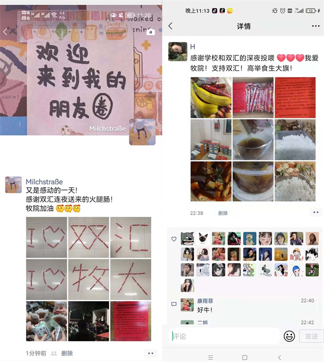 收到雙匯捐贈(zèng)的王中王產(chǎn)品,學(xué)生們紛紛涌入雙匯直播間,表達(dá):這是自己吃到最“有愛的”的香腸。并情不自禁地在宿舍中開始了花樣秀感激,為雙匯打call: 雙匯,中!