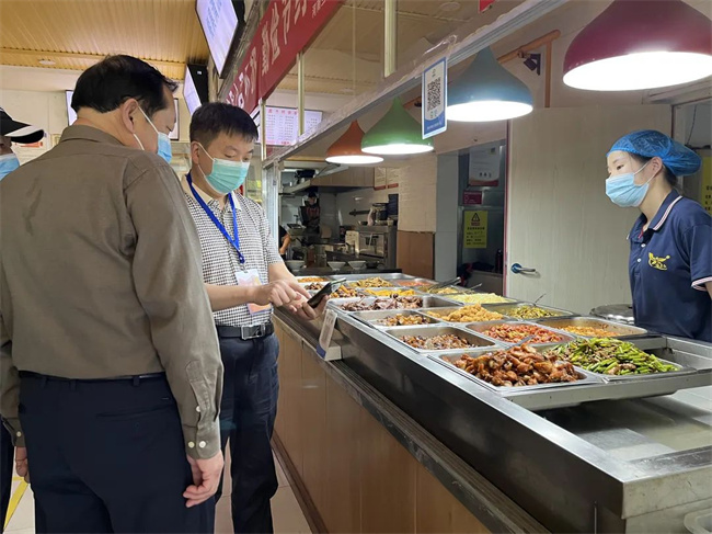 督導(dǎo)組一行對(duì)線上教學(xué)安排、人員管控、重點(diǎn)場所管理、后勤保障等防疫措施的落實(shí)情況進(jìn)行了實(shí)地查看。隨后一行人到學(xué)校大門、教學(xué)監(jiān)控室、餐廳等與學(xué)生學(xué)習(xí)生活密切相關(guān)的場所,詳細(xì)了解了教學(xué)管理、校園消殺、食品供應(yīng)、物價(jià)監(jiān)管等情況,并對(duì)餐廳工作人員的核酸檢測情況進(jìn)行了抽查檢驗(yàn)。