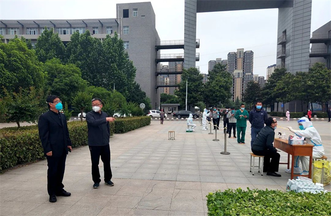 5月4日,市委副書記、政法委書記馬正蘭,市人大常委會副主任韓國全,市教育局局長桂勇翔,示范區(qū)管委會主任袁樹林等一行到我院調(diào)研指導(dǎo)疫情防控工作。