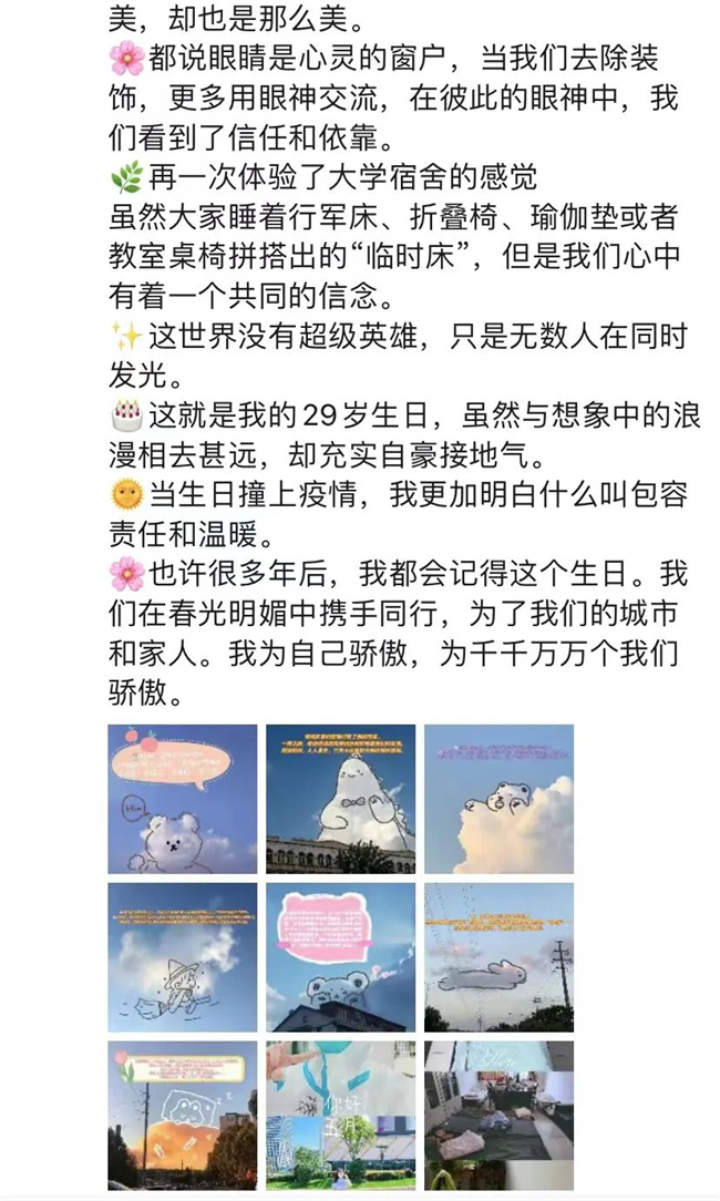 為同學(xué)們配送餐飲,我們的大白是三個月孩子的媽媽,是生日當(dāng)天投身抗疫一線教職工,這個世界沒有超級英雄,只有無數(shù)在發(fā)光的普通人。
