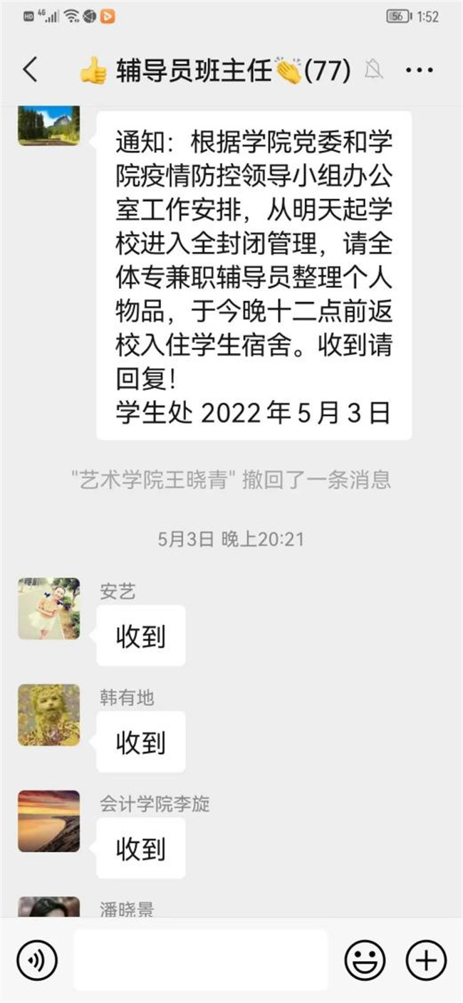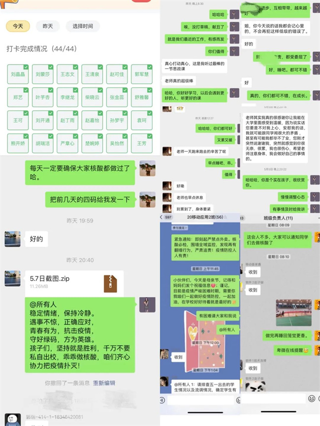 輔導(dǎo)員鄧琳老師表示:“作為一名輔導(dǎo)員老師,我有責(zé)任有義務(wù)在這個時候守護在學(xué)生的身邊,在這段過程中,我切身感受到了工作責(zé)任重大、任務(wù)艱巨、使命光榮。我們輔導(dǎo)員要想學(xué)生之所想,憂學(xué)生之所憂,急學(xué)生之所急,關(guān)愛和責(zé)任為學(xué)生保駕護航。