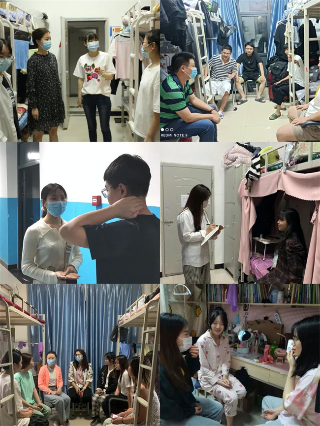院系領(lǐng)導(dǎo)與輔導(dǎo)員們深入宿舍檢查學(xué)生健康碼、關(guān)心學(xué)生生活、與學(xué)生談心