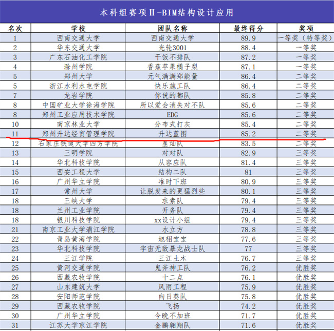 鄭州升達經(jīng)貿(mào)管理學(xué)院在全國高校BIM應(yīng)用畢業(yè)設(shè)計大賽獲二等獎
