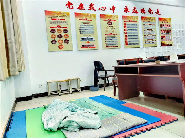 剛返校時(shí),由于事發(fā)突然,很多老師沒帶換洗衣服生活必需品,在辦公室打地鋪,黨員活動(dòng)室的椅子、教室的課桌都成了老師的臨時(shí)棲身地。“我睡沙發(fā),還不算冷!”接下來的日子,王廣源每天都有新感悟,尤其是看到李東方、宋冠宇、孔廣路、吳賽、牛家明、范云峰等男教師在完成自己的工作后,還抽空幫助女教師把一筐筐沉重的飯菜搬到樓上,干完活,還沒來得及吃飯,就累得坐在地上靠著墻睡著了……