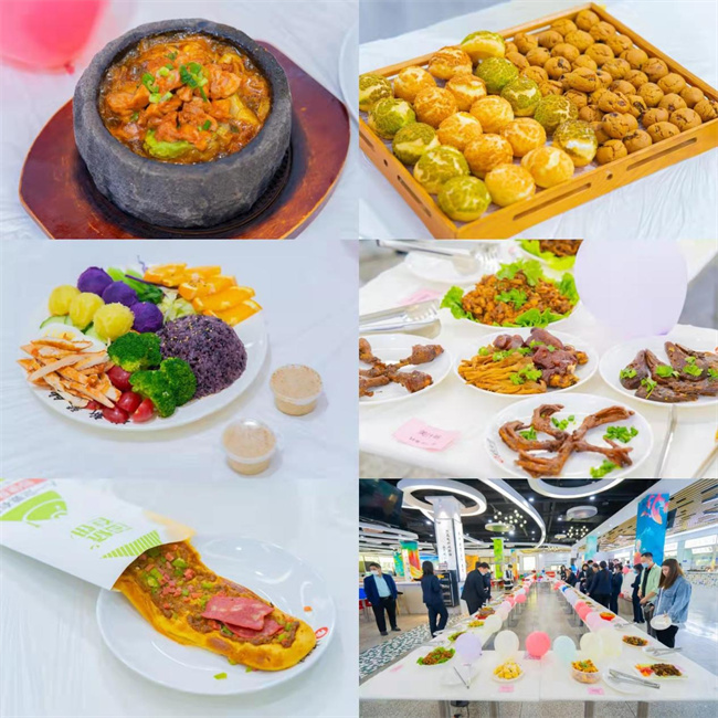 邂逅美食,來一場舌尖上的“宴”遇。根據(jù)新冠肺炎疫情防控要求,同時保證讓更多學生品嘗到美食,伙食科分別設置山水園、南食堂兩個會場進行人員分流。學校12家餐廳共推介38道美食,達達咖啡等校內(nèi)商業(yè)甜品店共推介13種糕點。本次品鑒會經(jīng)過師生品鑒、投票,最終分別有三道美食及甜品獲評為“最受師生喜愛的美食”。品鑒會上,香氣逼人的上海醬鴨飯、色香味俱全的東北鍋包肉、擺盤精致的茶香牛排;還有受女生追捧的減脂餐、螺螄粉,小巧可人的巧克力奶豆,讓人垂涎三尺的奧利奧提拉米蘇,迷倒萬千學生的網(wǎng)紅“紅絲絨蛋糕”等等,使同學們在品鑒中感受中華美食文化,在品鑒中體味烹飪者的溫暖,在品鑒中習作精美廚藝。