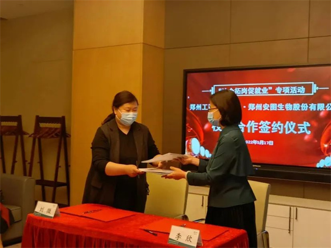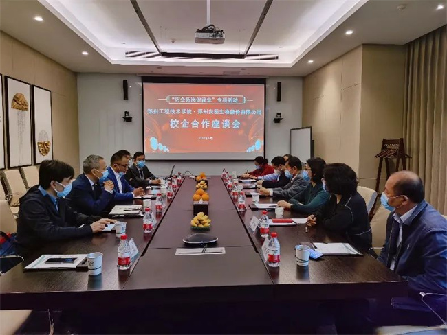 鄭州安圖生物工程股份有限公司董事長(zhǎng)苗擁軍感謝學(xué)校長(zhǎng)期以來為安圖生物輸送人才、關(guān)心和支持安圖生物的建設(shè)和發(fā)展。詳細(xì)介紹了安圖生物的發(fā)展前景,并表示愿意在進(jìn)一步深化校企合作,開展訂單式人才培養(yǎng),為學(xué)生挖掘和提供更多工作崗位,安排員工到學(xué)校與學(xué)生開展交流,幫助貧困優(yōu)秀學(xué)生發(fā)展等方面多方位服務(wù)師生。
