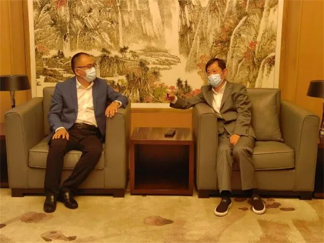 黨委書記周春輝、董事長(zhǎng)苗擁軍親切交談
