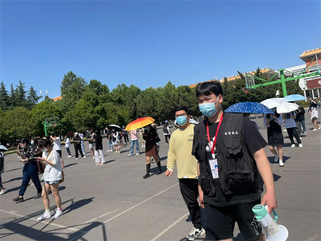 本學(xué)期,疫情防控形勢緊張,作為金貿(mào)學(xué)院學(xué)生骨干,申曉陽同學(xué)共組織出勤核酸檢測工作13次,主要負(fù)責(zé)核酸檢測時的秩序維護(hù)工作。為了保證間隔兩米,不管是烈日當(dāng)頭還是刮風(fēng)下雨,申曉陽同學(xué)總會在核酸檢測前一天到現(xiàn)場一個一個檢查地標(biāo)有無缺失,及時修補,確保核酸檢測有序進(jìn)行。核酸檢測進(jìn)行中,申曉陽同學(xué)組織志愿者團(tuán)隊,不間斷提醒同學(xué)們提前打開核酸登記碼,保持兩米間隔的距離排好隊伍;并引導(dǎo)同學(xué)們不插隊、不掉隊,文明有序等待檢測。