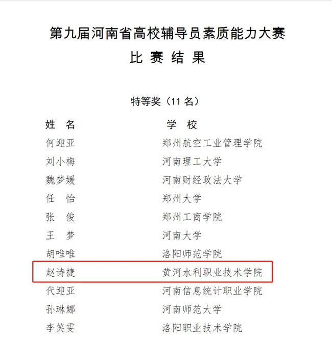 本次大賽由中共河南省高校工委、河南省教育廳主辦,河南理工大學承辦,是河南省高校輔導員隊伍最高級別賽事。大賽首次采用線上線下相結合的方式進行,分為初賽、復賽和決賽三個環(huán)節(jié),包括基礎知識測試、案例研討、談心談話三個比賽項目,綜合考察參賽輔導員的理論素養(yǎng)、思想教育能力、語言表達能力、邏輯思維能力、問題解決能力、個人綜合素質(zhì)等多方面的知識和技能。經(jīng)過各環(huán)節(jié)的激烈比拼,最終11名選手獲得特等獎,11名選手獲得一等獎,31名選手獲得二等獎,19名選手獲得優(yōu)秀獎。