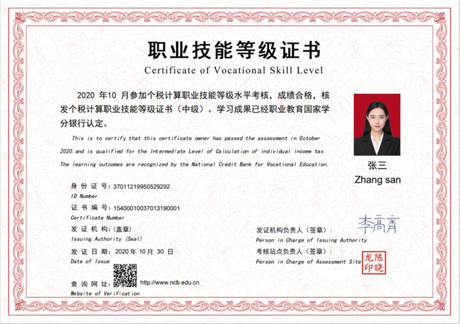 (個(gè)稅計(jì)算職業(yè)技能等級(jí)證書樣本(初級(jí)))