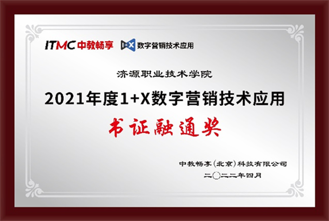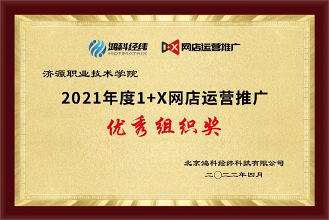 據(jù)悉,濟(jì)源職業(yè)技術(shù)學(xué)院“網(wǎng)店運(yùn)營(yíng)推廣”考試組織工作獲得了2021年度的1+X網(wǎng)店運(yùn)營(yíng)推廣職業(yè)技能等級(jí)證書(shū)(中級(jí))全國(guó)統(tǒng)一考試“優(yōu)秀組織獎(jiǎng)”的榮譽(yù)稱(chēng)號(hào),“數(shù)字營(yíng)銷(xiāo)技術(shù)”考點(diǎn)獲得了2021年度“1+X”數(shù)字營(yíng)銷(xiāo)技術(shù)應(yīng)用“書(shū)證融通獎(jiǎng)”。