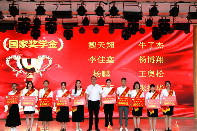 黨委書記馮慰冬為獲得國家獎學金的學生(輔導員代領)頒獎