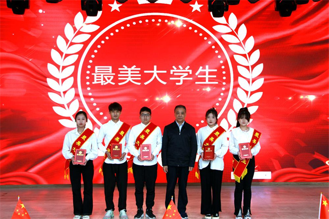 學院院長宋宏偉為最美大學生代表頒獎