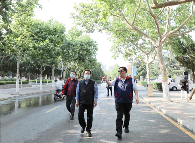 黃衛(wèi)東一行在王新奇董事等陪同下,實(shí)地查看校園隔離區(qū)安置、學(xué)生宿舍以及常態(tài)化疫情防控措施落實(shí)等情況。黃衛(wèi)東對學(xué)校校園文化建設(shè)和綠化美化給予高度贊賞,他希望今后加強(qiáng)校地合作,進(jìn)一步提升合作的內(nèi)容和層次。