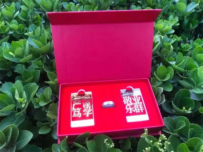 中新河南網(wǎng)5月26日電(史航) 5月25日,鄭州電專電力工程學院的2022屆畢業(yè)生趙詩語驚喜的收到了一個印有“此去經(jīng)年 星海燦爛”的畢業(yè)季專屬禮品盒子,打開之后是一枚戒環(huán)和一對書簽。戒環(huán)外壁雕刻鄭州電專;,內(nèi)壁雕刻畢業(yè)生姓名和“心中有戒 言之有矩 行之有界”的廉潔寄語,寓意畢業(yè)生走上工作崗位后,恪守廉潔奉公、勤儉節(jié)約、德行高尚的品格,謹記社會責任與義務(wù),行有所戒、情有所指。